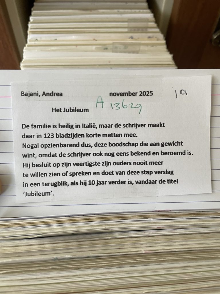 - Andrea Bajani, Het jubileum: “De familie is heilig in Italië, maar de schrijver maakt daar in 123 bladzijden korte metten mee. Nogal opzienbarend dus, deze boodschap (…)”