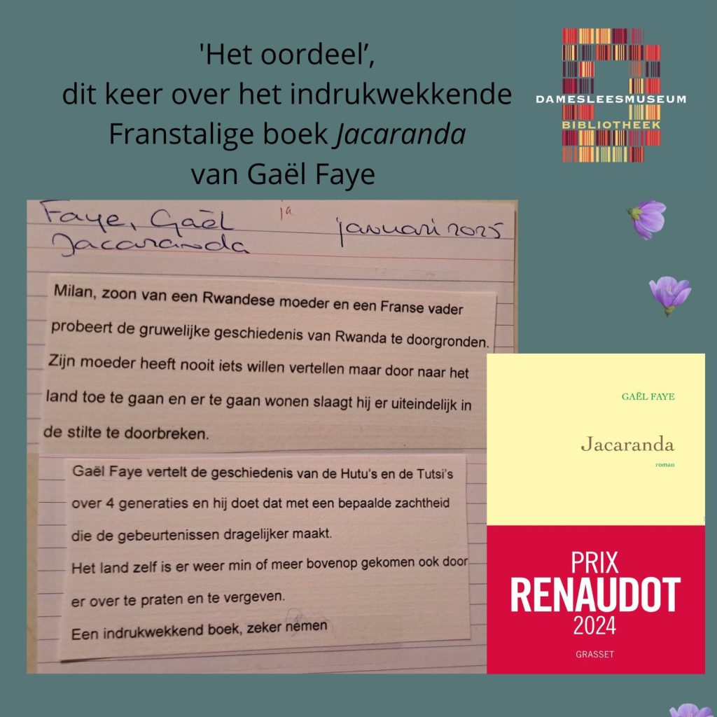 Elke maand keurt het Leescomité ongeveer 25 nieuwe boeken in het Nederlands, Engels, Frans en Duits. Het merendeel wordt goedgekeurd en in de collectie opgenomen, maar er zijn ook altijd enkele boeken die worden afgwezen. In de rubriek ‘Het oordeel’ geeft het Leescomité een klein inkijkje door een positief én een negatief verslagje te publiceren. Ditmaal: een ‘ja’ voor Jacaranda en een ‘nee’ voor Buys Ballot.